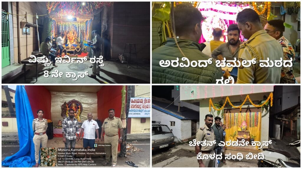 ದೇವರಾಜ ಉಪವಿಭಾಗ & ನರಸಿಂಹರಾಜ ಉಪವಿಭಾಗದ ಎಲ್ಲಾ ಪೊಲೀಸ್ ಠಾಣಾ ವ್ಯಾಪ್ತಿ ಪ್ರದೇಶಗಳಲ್ಲಿ ಗಣೇಶ ಹಬ್ಬದ ಪ್ರಯುಕ್ತ ನಗರದ ವಿವಿಧ ಸ್ಥಳಗಳಲ್ಲಿ ಗಣೇಶ ಪ್ರತಿಷ್ಠಾಪಿಸಿದ್ದು, ಈ ಸ್ಥಳಗಳಲ್ಲಿ ಯಾವುದೇ ಅಹಿತಕರ ಘಟನೆ ನಡೆಯದಂತೆ ನಿಗಾವಹಿಸಲು ಪೊಲೀಸ್ ಠಾಣೆಯ ಅಧಿಕಾರಿಗಳು ಮತ್ತು ಸಿಬ್ಬಂದಿಗಳೊಂದಿಗೆ ಕಾಲ್ನಡಿಗೆ ಮೂಲಕ ವಿಶೇಷ ಗಸ್ತು ಮಾಡಿರುತ್ತಾರೆ.