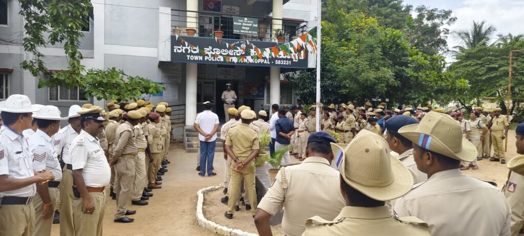 ಗಣೇಶ್ 13 ನೇ ದಿನದ ವಿಸರ್ಜನೆ ಅಂಗವಾಗಿ ಕೊಪ್ಪಳ ನಗರದಲ್ಲಿ ಡಿ ಎಸ್ ಪಿ ಕೊಪ್ಪಳ ರವರಿಂದ ಸಿಬ್ಬಂದಿ ಮತ್ತು ಅಧಿಕಾರಿಗಳಿಗೆ ರೋಲ್ ಕಾಲ್ ತೆಗೆದುಕೊಂಡು ಸೂಕ್ತವಾಗಿ ಬಂದೋಬಸ್ತ್ ಕರ್ತವ್ಯವನ್ನು ನಿರ್ವಹಿಸಲು ಸೂಕ್ತ ಸಲಹೆ ಸೂಚನೆಗಳನ್ನು ನೀಡಲಾಯಿತು.